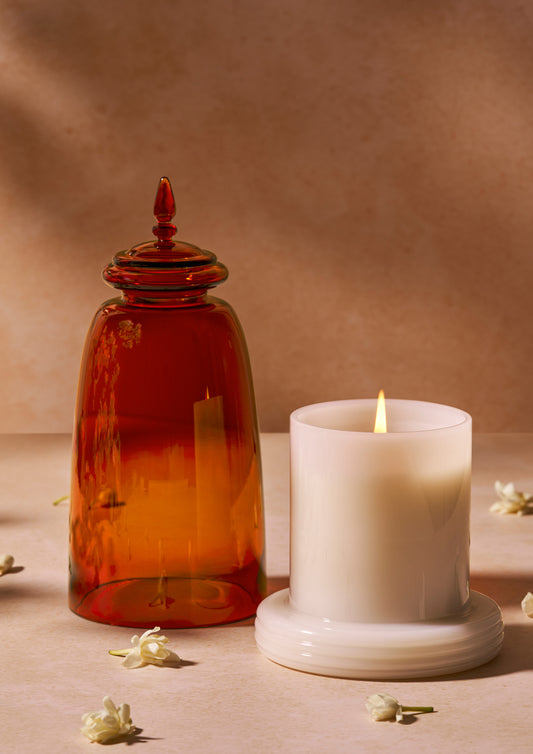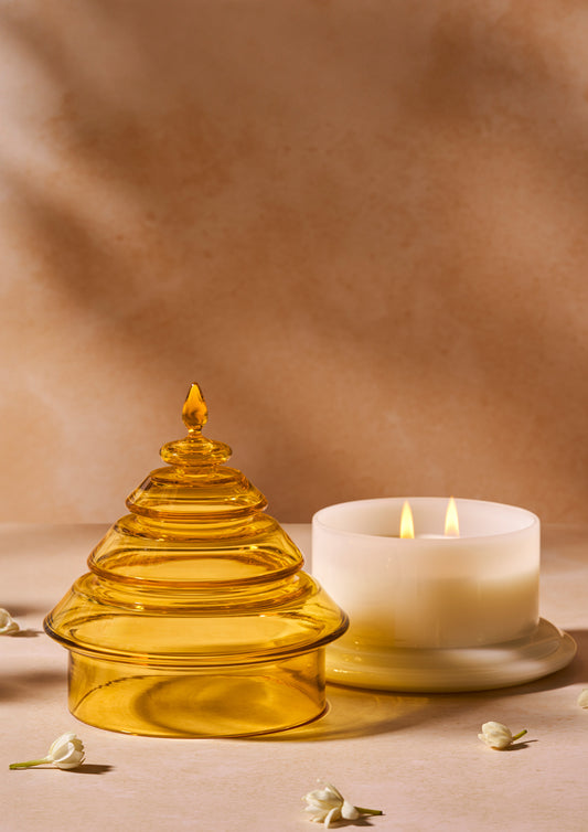 Kanak Temple Filled Candle Jar - Amber